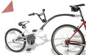 Tag-along bikes are ideal for 5 - 7 year olds who are not yet confident cycling on their own, but are too big for the bike trailer. It can be attached to any of our bikes provided there is at least 3 inches of seat post extending from the frame. Please note: Tag along's must be hired with one of our rental bicycles. Not rented as a sole attachment.